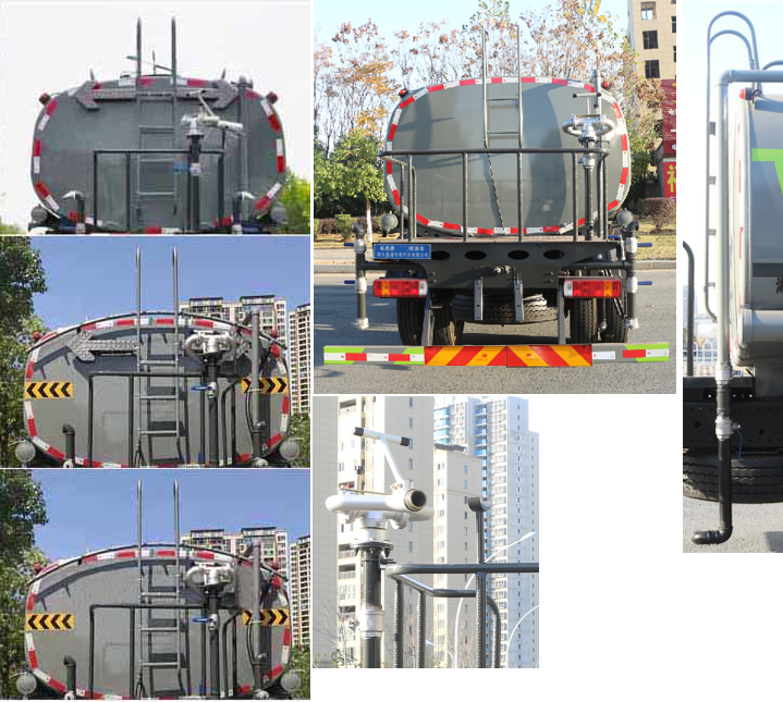 福田大黃蜂灑水車,大黃蜂15方灑水車,福田玉柴灑水車,奧鈴15方灑水車,該車主要用于城鄉園林綠化,路面噴灑,除塵和降溫;主要裝置為罐體及噴灑裝置;罐體總容量:11.4立方米;罐體有效容積:10.86立方米;罐體外形尺寸(×長軸×短軸)(mm):5200×2300×1400;4200×2300×1450;側、后防護材料均為:Q235碳鋼,連接方式均為:螺栓連接,后部防護截面尺寸(mm):120×50,后部防護離地高度(mm):470;ABS系統型號:ABS-VI.E;生產企業:廣州瑞立科密汽車電子股份有限公司.ABS系統型號:ABS-E;生產企業:威伯科汽車控制系統(中國)有限公司,ABS系統型號:3550D-1010;生產企業:東科克諾爾商用車制動系統(十堰)有限公司.采用4500mm軸距。選裝尿素罐位置,選裝電瓶位置。選裝后部箭頭燈,選裝后部弧形噴灑裝置,選裝水炮支架位置,選裝高位花灑管道樣式。