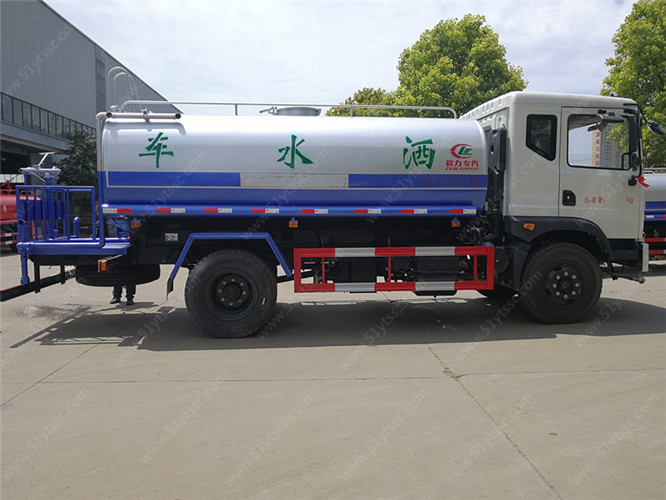 罐體采用4MM厚武鋼專用容積板制作,車前裝有鴨嘴形噴嘴或圓頭沖嘴,可以用調節噴嘴螺紋的方法改變噴水器的噴灑方向和角度,高射噴槍可以用于城鄉園林綠化及應急消防車的作用。蓮蓬噴嘴可以澆落路中間噴水器沖起的灰塵,起到清潔空氣的作用。 帶后灑、側噴、高位花灑,后工作平臺及綠化高炮,配專用水泵(泵進泵出)及消防栓接口,兩根等長輸水管,金屬漆,其余標配。