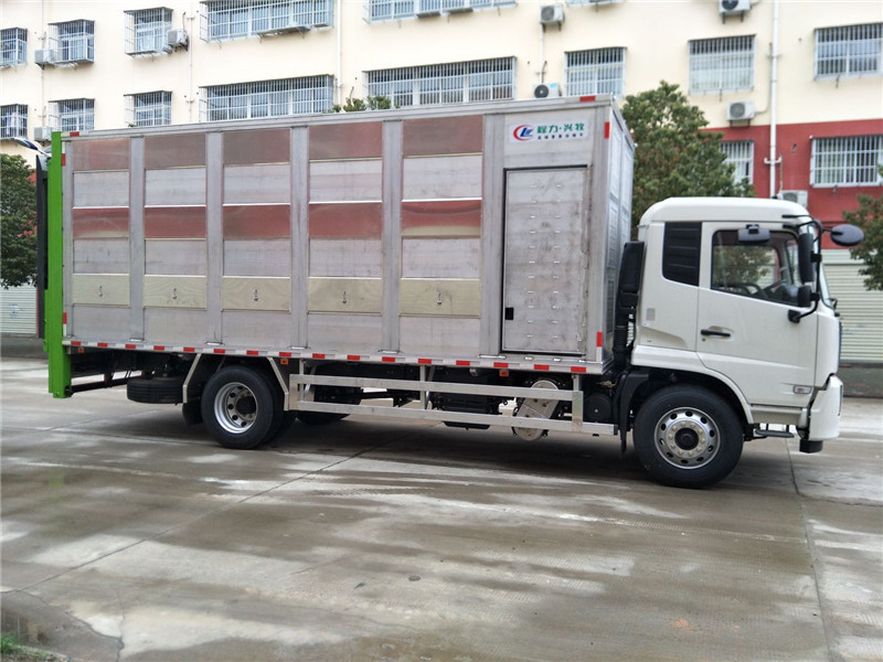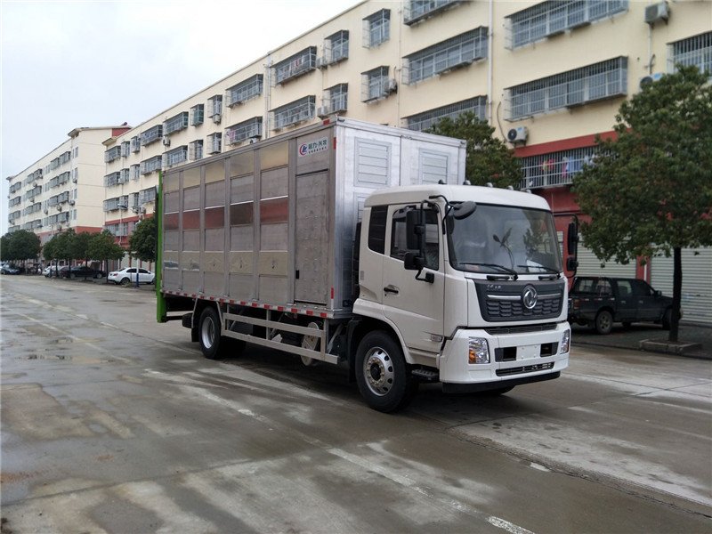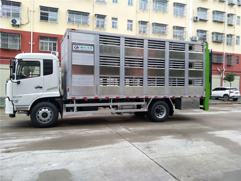 畜禽運(yùn)輸車是我公司在借鑒國內(nèi)外產(chǎn)品的基礎(chǔ)上,結(jié)合用戶實(shí)際需求新研發(fā)的一款運(yùn)輸仔豬、生豬、雞苗等畜禽的專用功能較強(qiáng)的運(yùn)輸車輛,是我公司傾力打造的一款專門面向活禽、牲畜運(yùn)輸市場(chǎng)的一款高端運(yùn)輸車,該款運(yùn)輸車旨在增強(qiáng)活禽、牲畜在運(yùn)輸過程中的舒適度、減少死亡率,提高運(yùn)輸效率,該車配備設(shè)施完善、自動(dòng)化程度高。廂式畜禽運(yùn)輸車可用于成品豬、生豬、豬仔、雞苗跨省運(yùn)輸,全程無泄漏,有糞液收集系統(tǒng)箱體采用全鋁合金型材制作,質(zhì)量輕、抗腐蝕性強(qiáng)。箱體中層安裝保溫隔板,頂部采用玻璃鋼,有效避免高溫傳導(dǎo),控制箱體內(nèi)部溫度。車廂內(nèi)部采用全液壓可調(diào)整分層結(jié)構(gòu),二層、三層、四層16欄(根據(jù)需求選擇)飲水系統(tǒng),側(cè)推拉通風(fēng)滑窗,帶電子排風(fēng)扇,視頻監(jiān)控,溫度顯示監(jiān)控,中間有隔欄,每層約承重300頭仔豬的重量。車廂后部選裝垂直液壓升降尾板,更實(shí)用!