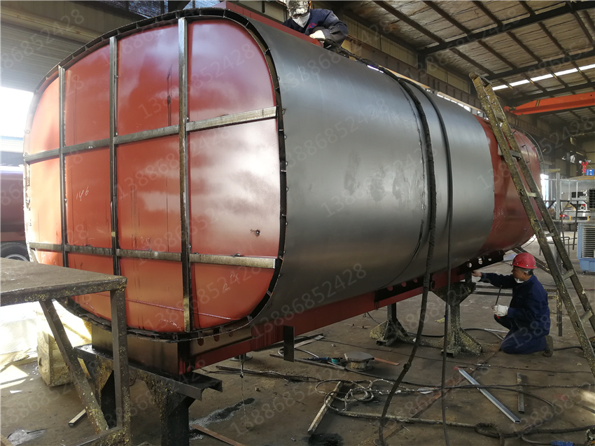 3. 保層溫的制作是在水罐外部另外焊接10mm厚的支撐骨架,然后用保溫材料將骨架內(nèi)部填充滿,**在骨架外蒙上一層外皮。 保溫層外表鐵皮采用8mm厚高強(qiáng)度耐磨板,可選擇使用不銹鋼分鏡面8K或磨砂板