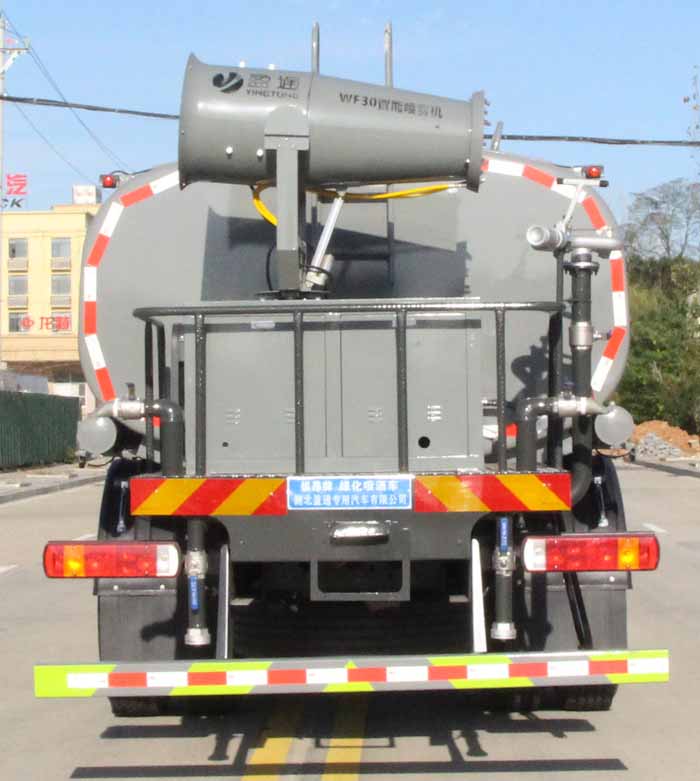 該車主要用于城鄉(xiāng)園林綠化噴灑作業(yè);主要裝置為水罐及噴灑裝置;運(yùn)輸介質(zhì):丙酮水溶液,介質(zhì)密度:950千克/立方米.罐體總?cè)萘?/span>:16.59立方米;罐體有效容積:15.8立方米;罐體外形尺寸(長(zhǎng)×長(zhǎng)軸×短軸)(mm):6800×2400×1450.側(cè)、后防護(hù)材料均為:Q235碳鋼,連接方式均為:螺栓連接,后部防護(hù)截面尺寸(mm):120×50,后部防護(hù)離地高度(mm):490;ABS系統(tǒng)型號(hào)/生產(chǎn)企業(yè):CM4XL-4S/4M,廣州瑞立科密汽車電子股份有限公司.該車隨底盤安裝限速裝置,限速89km/h.選裝前部不帶電子水炮,該狀態(tài)下車長(zhǎng)為10150mm;當(dāng)前部安裝電子水炮時(shí),車長(zhǎng)為10650mm,車輛前伸500mm.選裝前部電子水炮裝置樣式,選裝車輛前部鴨嘴裝置. |