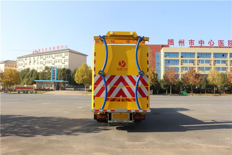 上裝配置:護箱:采用Q235國標邊3mm底板花紋板4mm厚,箱體后部防撞包采用美國進口T90型號,防撞緩沖吸能模塊主要由車載防撞緩沖墊和導向標志架組成,充當施工作業車輛后方的緩沖衛士。如若發生追尾事故,能夠在肇事車輛和前方施工作業區域之間構建一個緩沖區域,通過機具結構變形吸收撞擊的能量,最大限度地降低被保護人員及設備遭到碰撞的幾率。高性能液壓系統,可實現快速舉升和落下操作,方便設備運輸轉場,一鍵啟動功能,舉升和落下防撞裝置,當防撞裝置未完全落下到工作位置或舉升到垂直運輸位置時,會有自動警告音提示。